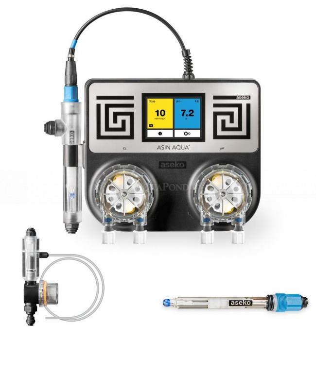 Asin Aqua DOSE sa senzorom protoka je kompaktni uređaj za bazene do 250 m 3 koji brine o bazenskoj vodi. Raspršuje unaprijed postavljenu količinu dezinfekcije u vremenskim intervalima koje je postavio korisnik. Održava odabranu pH vrijednost. Zahvaljujući tome, voda je uvijek bistra i besprijekorna. Postavljena vrijednost i izmjereni pH prikazuju se na velikom zaslonu osjetljivom na dodir, na kojem se također u jednostavnom dijaloškom načinu postavljaju svi potrebni parametri. Sadrži sondu za mjerenje pH, pumpu za doziranje i kontrolni mjerač protoka. DOZA - vremensko doziranje dezinfekcije (satna doza dezinfekcije).