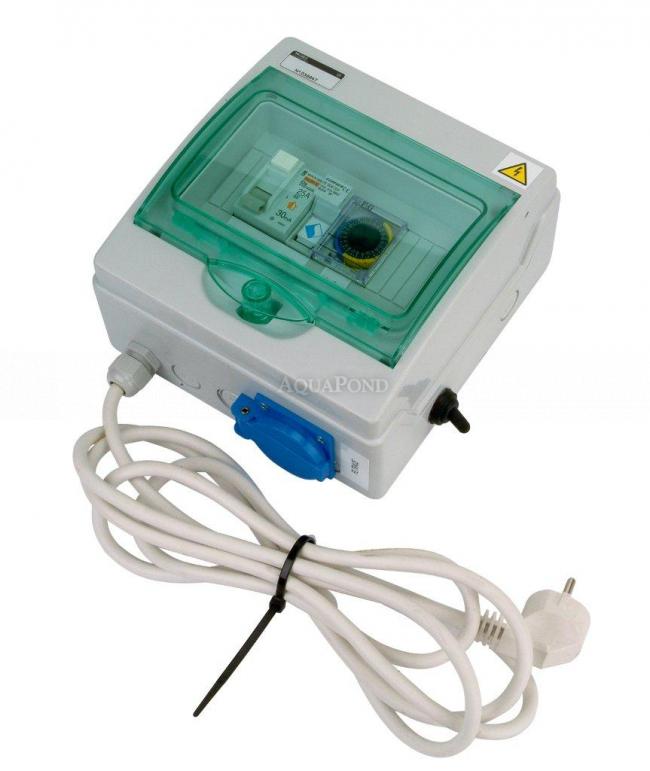 Automatska F1 kontrola s flekso kabelom - jednostavna instalacija, bez ometanja unutarnjeg ožičenja. Utikač filtera priključite samo na utičnicu, a utikač za automatizaciju u utičnicu predviđenu za bazen. Automatizacija je opremljena strujnom zaštitom od 30 mA, filterskom zaštitom motora i timerom za vremensko prebacivanje perioda filtriranja. Sa strane razvodne ploče nalazi se prekidač za trenutnu aktivaciju filtriranja, npr. prilikom usisavanja.