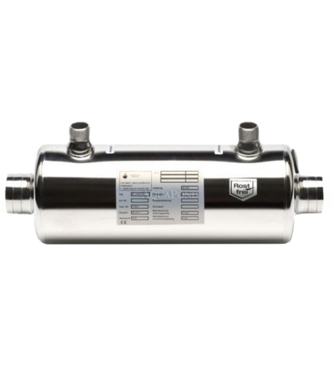 Dizajn izmjenjivača topline posebno je dizajniran za grijanje bazenske vode, vode u whirlpoolima i toplicama ili za podno grijanje. Konstrukcija izmjenjivača koncipirana je s obzirom na ograničenje protoka kako bi se osigurala opskrba toplinom u maksimalnoj mjeri, a istovremeno je minimaliziran tlak u sustavu grijanja. Tijelo montirano u PP pokrov s rebrastom spiralom od nehrđajućeg čelika (tip VA) visoke otpornosti na koroziju za bazene.