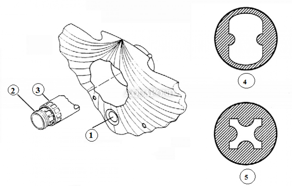 1 pneumatski gumb za isključivanje i uključivanje 2 Unutarnja mlaznica za regulaciju protoka vode 3 Vanjska mlaznica za regulaciju količine usisnog zraka 4 Maksimalni protok vode postiže se okretanjem unutarnje mlaznice ulijevo 5 Suprotno tome, možete ograničiti protok vode okretanjem unutarnje mlaznice udesno |