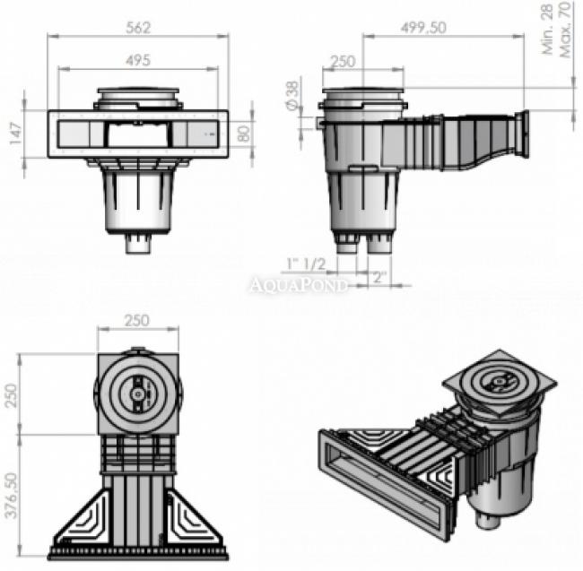 Skimer (površinski skupljač prljavštine) koristi se za uklanjanje onečišćene bazenske vode radi filtracije. Prikladno za folije ili montažne bazene. Izrađen od izdržljive ABS plastike. Ovaj materijal nije podložan promjenama zbog izloženosti kemijskim ili atmosferskim utjecajima. Tip skimmera određuje se prema konstrukciji bazena, sadrži brtvu s prirubnicom, zahvaljujući kojoj možete zabrtviti otvor u tijelu bazena ili foliji. Skimer ima okrugli poklopac postavljen na kvadratni okvir. Preporučamo ugradnju 1 skimmera na 25 m2 vodene površine bazena . Mogućnost kupnje inox seta - okvir i pričvrsni vijci za foliju i montažni bazen.