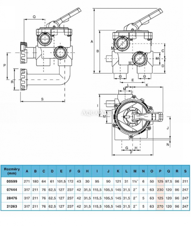 Astralni šesteroputni regulacijski ventili koriste se za prebacivanje šest hidrauličkih operacija procesa filtracije: filtriranje, ispiranje, ispiranje taloženja, recirkulacija, pražnjenje i zatvoreno. Tijelo ventila, poklopac i upravljačka poluga BYBY stoga trebaju biti izrađeni od ABS plastike, razvodnik od PPO, brtva od neoprena, a metalni dijelovi od nehrđajućeg čelika. Izlazi glave filtera su 6/4" (pumpa, mlaznica, kanalizacija).