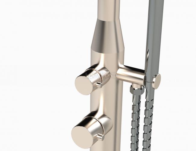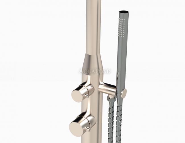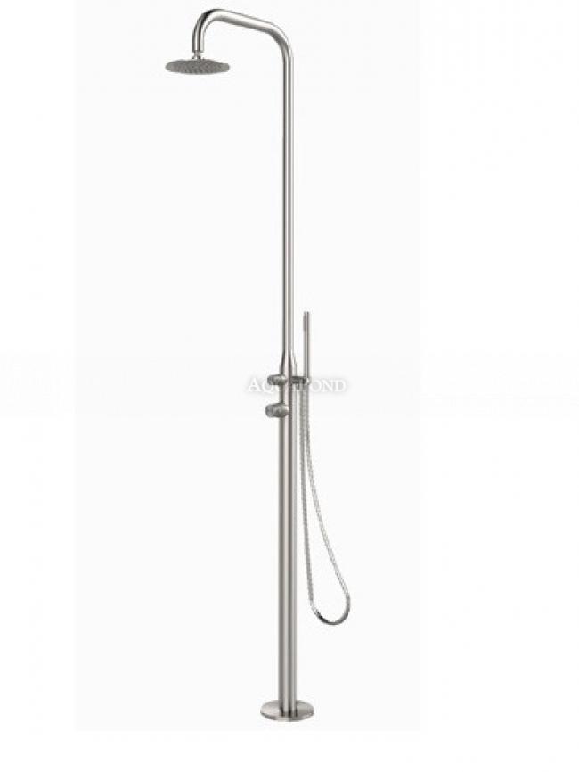 Vrtni tuš s hladnom i toplom vodom. Juist tuš će vas impresionirati na prvi pogled svojom cool elegancijom, visokokvalitetnim materijalima i jednostavnom montažom. Tuš, glava, praktički cijeli tuš je izrađen od visokokvalitetnog nehrđajućeg čelika. Vodu kontrolirate pomoću miješalice s polugom, a zahvaljujući glavi od 20 cm, prilikom tuširanja osjećat ćete se kao na kiši. Prikladan je dodatak svim vrstama obiteljskih bazena, zgodan, jeftin i praktičan izvor tople vode u rekreacijskim objektima, vrtlarskim naseljima, manjim sportskim objektima iu vrtovima obiteljskih kuća.