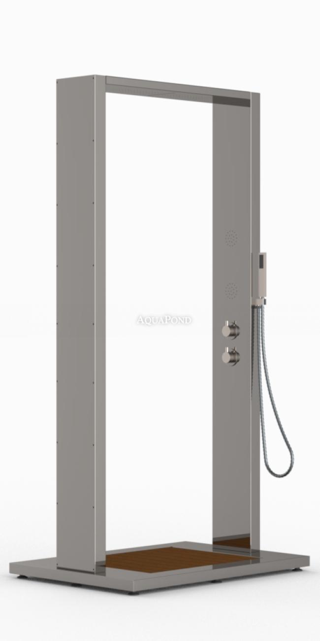 Podrazumijeva se da je tuš izrađen od visokokvalitetnog nehrđajućeg čelika. Podna rešetka izrađena je od WPC-a (wood plastic composite), koji vjerno imitira drvo, vodootporan je, jednostavan za održavanje i štiti vaša stopala od prljavštine i krhotina.