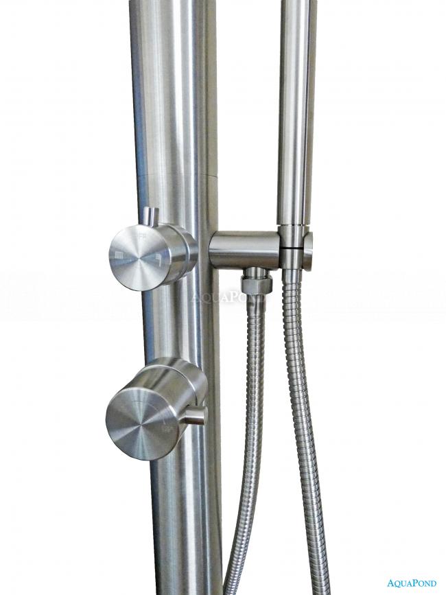 Vrtni tuš s hladnom i toplom vodom. Tuš Sylt će vas impresionirati na prvi pogled svojom hladnom elegancijom, visokokvalitetnim materijalima i jednostavnom montažom. Tuš, glava, praktički cijeli tuš je izrađen od visokokvalitetnog nehrđajućeg čelika. Vodu kontrolirate pomoću miješalice s polugom.