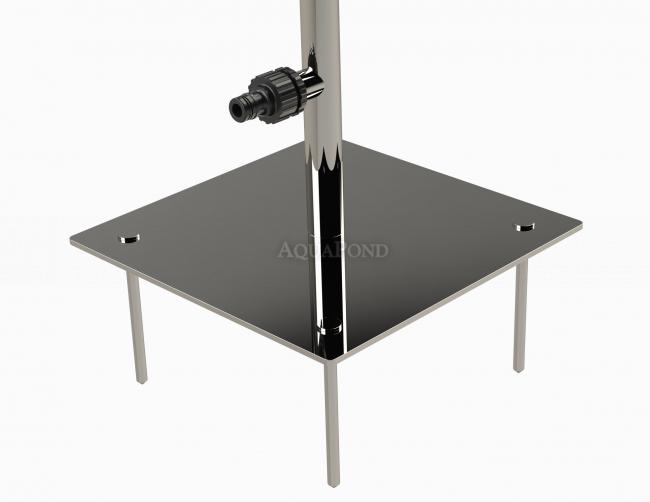 Vrtni tuš s dovodom hladne vode. Trombon vrtni tuš s integriranim držačem ručnika. Ovaj tuš je izrađen od nehrđajućeg čelika. Može se postaviti bilo gdje, jednostavno je i sigurno - u travnjak pomoću igle, a na drugim površinama uz pomoć ploče. Za spajanje vam treba samo vrtno crijevo s Gardena adapterom i tuš s hladnom vodom je spreman za korištenje. Hladna ili topla voda može se dovoditi u ovaj tuš iz protočnog grijača ili bojlera.