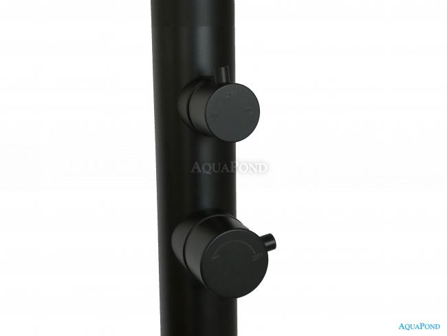 Vrtni tuš s hladnom i toplom vodom. Lago di Garda tuš će vas impresionirati na prvi pogled svojom cool elegancijom, visokokvalitetnim materijalom i jednostavnom montažom. Cijela tuš kabina je crno obojena od nehrđajućeg čelika V2A (plastika), što jamči dug vijek trajanja. Ovaj materijal je najprikladniji za vanjsku upotrebu. Prekidač se može koristiti za kontrolu između tuša za glavu i tuša za noge, a pomoću baterije možete postaviti željenu temperaturu. Prikladan je dodatak svim vrstama obiteljskih bazena, povoljan, jeftin i praktičan izvor tople potrošne vode u rekreacijskim objektima, u vrtlarskim naseljima, na malim sportskim objektima iu vrtovima obiteljskih kuća.