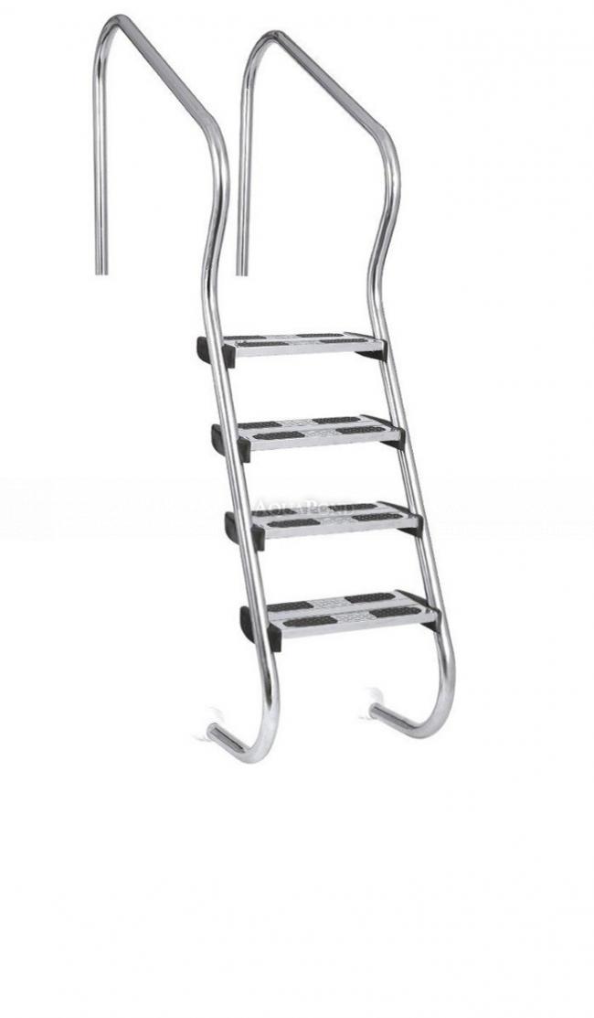 Stepenice su dizajnirane za udoban ulazak u vaš bazen. Izrađene su od visokokvalitetnog poliranog nehrđajućeg čelika AISI 316 promjera 43 mm. Posebno pogodan za obiteljske bazene u zemlji ili za komercijalnu upotrebu na bazenima. Stepenice su dopunjene gazištima protiv klizanja. Svaka ljestvica završava potpornim spojem prema zidu bazena. Anker se isporučuje s kućištem i stezaljkom za uzemljenje. Za čišćenje materijala od nehrđajućeg čelika koristite proizvode posebno namijenjene za to. Potporni spojevi nisu dio paketa.