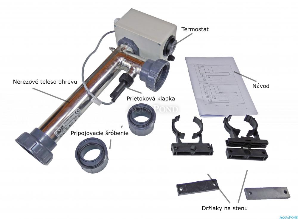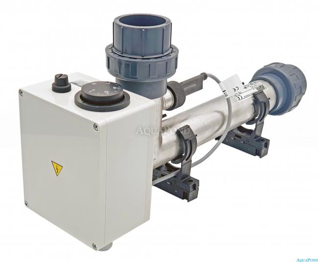 Električni protočni grijač namijenjen je za zagrijavanje vode u bazenima i whirlpoolima. Rad se sastoji u zagrijavanju tekuće vode pomoću grijaćeg elementa, temperatura zagrijane vode postavlja se regulacijskim termostatom. Grijaći element se uključuje kontaktorom, kojim upravlja gore spomenuti termostat, sigurnosni indikator protoka. Iz tog razloga, tzv Izvrsna automatizacija - 24-satni programator filtracije, zaštita od prenapona (zaštita od opasnog kontaktnog napona), toplinska zaštita motora, kontaktor i sklopka za grijanje.