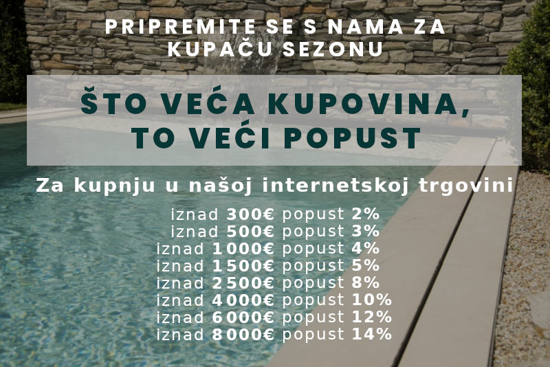 AQUAPOND - pristupačne cijene, značajni popusti na kupnje preko 300 €. Samo dodajte robu u košaricu i iznos popusta bit će izračunat na temelju iznosa kupnje. Što je veća kupnja, to je popust veći.