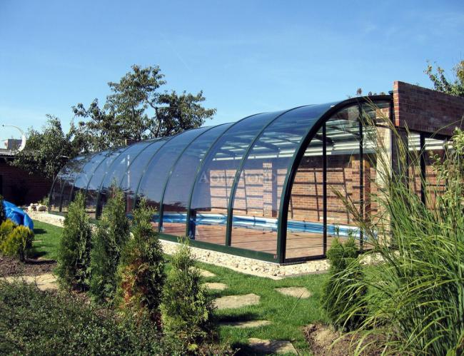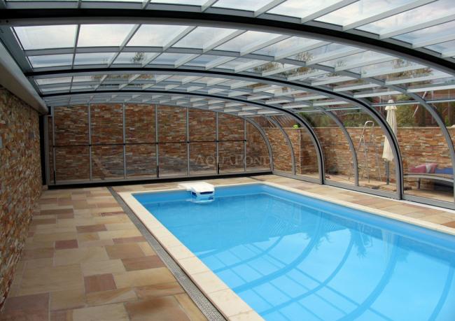 Cijenit ćete ovo rješenje, naime ako trebate pokriti bazen, a želite ili možete koristiti zid svoje kuće za postavljanje krova. Gornji pokretni mehanizam nalazi se izravno na ovom zidu.