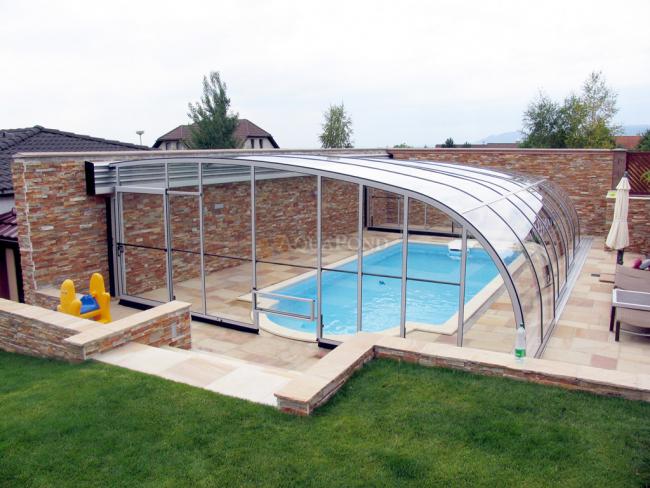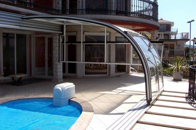 Pojedine segmente krova možete po želji pomicati ulijevo ili udesno dok se bazen potpuno ne otkrije ili pokrije.