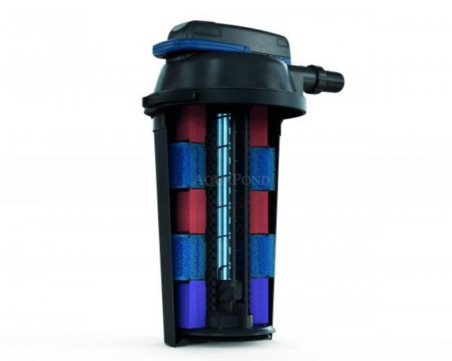 FiltoClear 31000 tlačni filter s integriranom UV lampom od 60 W. Brzo i učinkovito jamči uživanje u čistoj vodi u ribnjaku. Onečišćena voda iz ribnjaka pumpa se u dobro zatvoreni sustav - tlačnu posudu. Može se u potpunosti ugraditi u zemlju ili se može postaviti iznad vodopada i ima praktično čišćenje bez potrebe za otvaranjem filtera zahvaljujući patentiranoj tehnologiji Easy-Clean. Filter se može lako sakriti u blizini ribnjaka zakopavanjem u zemlju i prekrivanjem filterom FiltoCap stone grey. Filtar je idealan za napajanje malih potoka, kaskada i slapova. Prilikom čišćenja filtra spužve se istiskuju pomoću ručke na vrhu filtra, prebacivanjem Easy-Clean ventila voda koja teče ispire prljavštinu iz filtra. Uključuje jednostavno praćenje protoka vode, začepljenja filtera i UVC aktivnosti. Kompaktna veličina koja pruža visoku učinkovitost - izvrsno rješenje za ribnjake s ograničenim prostorom. Izrađen od visokokvalitetnog i izdržljivog materijala.