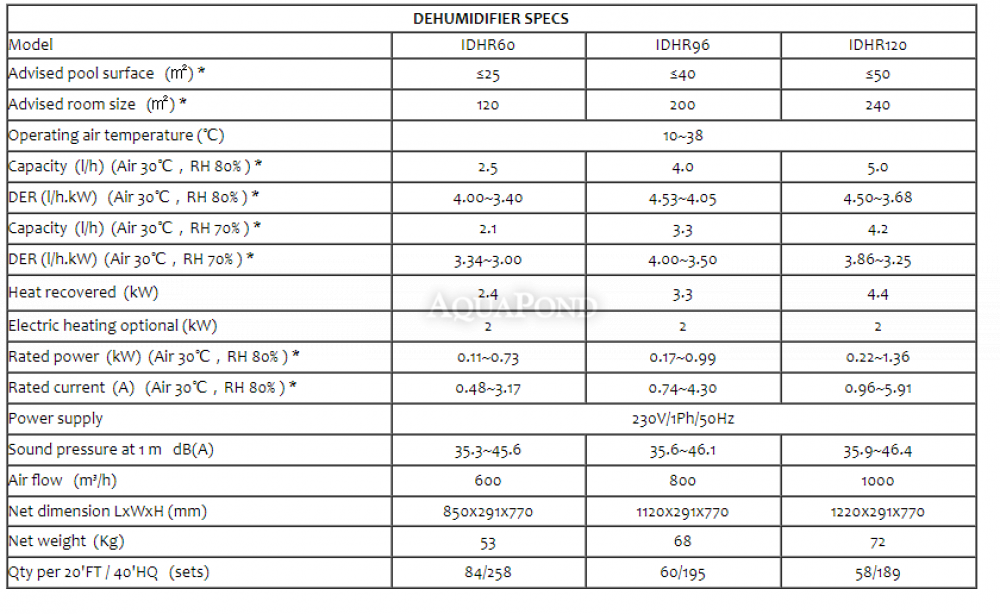 Odvlaživač zraka Fairland R-DEH Inverter RIDH120Potpuno inverterski odvlaživač namijenjen za bazene do 50 m 2 . Zahvaljujući potpuno inverterskoj tehnologiji , može se postići do dva puta ušteda energije. Odvlaživač R-DEH Inver ističe se modernim dizajnom, tihim radom (samo 46 dB) i tankom veličinom (širina odvlaživača je 291 mm). Prednost odvlaživača je jednostavna montaža. Učinkovitost odvlaživača je 4,0 l/sat (sposoban je ukloniti 4,0 l/sat iz zraka pri temperaturi zraka od 30 °C i vlažnosti od 80%). Mogućnost priključka grijanja na struju snage 2 kW. |