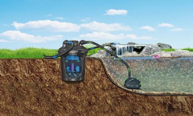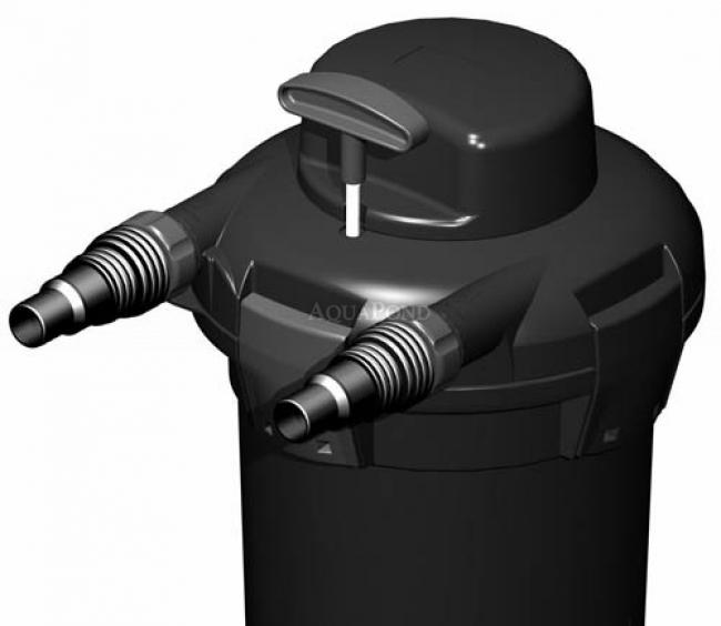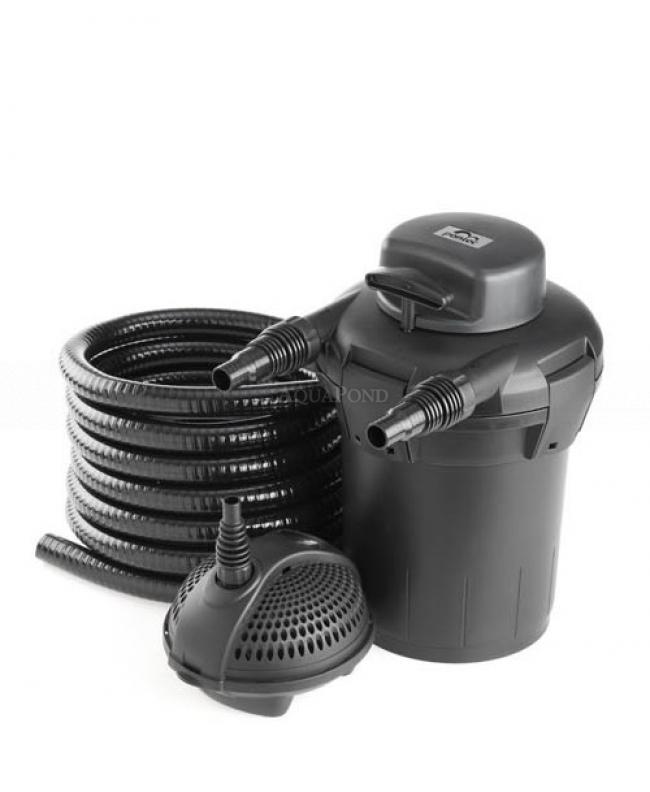 PondoPress 5000 je set tlačnih filtara, za ribnjake od 5000 l, bez zalihe, s filtarskim biomehaničkim materijalima i integriranim UVC uređajem za predčišćenje od 7W, te s mehanizmom za čišćenje za jednostavno održavanje filtarskih materijala. Ima filtarsku pumpu visokog učinka (1500 l/h), s rupama od 4 mm i crijevom od 5 m, uz sve potrebne priključke. Potok se može hraniti pročišćenom vodom.