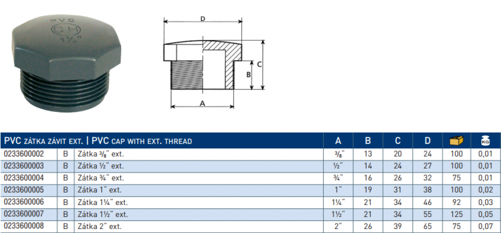 PVC Utikač vanjski navoj; veza - vanj. boja - siva; (ext - vanjski) Pročitajte više