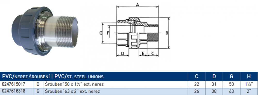 Služi za spajanje bazenske cijevi ili bazenskog tlačnog crijeva d=50mm s izmjenjivačem topline ili cijevi od druge vrste materijala. Prednost PVC okova je jednostavno rukovanje, jednostavna montaža i kemijska otpornost okova.