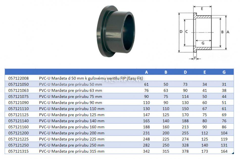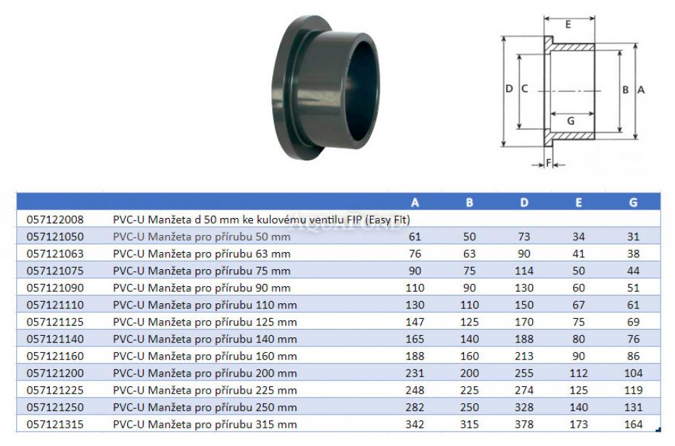 PVC-U manžeta d 50 mm za FIP (Easy Fit) kuglasti ventil