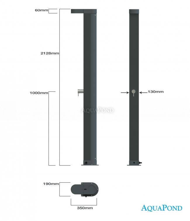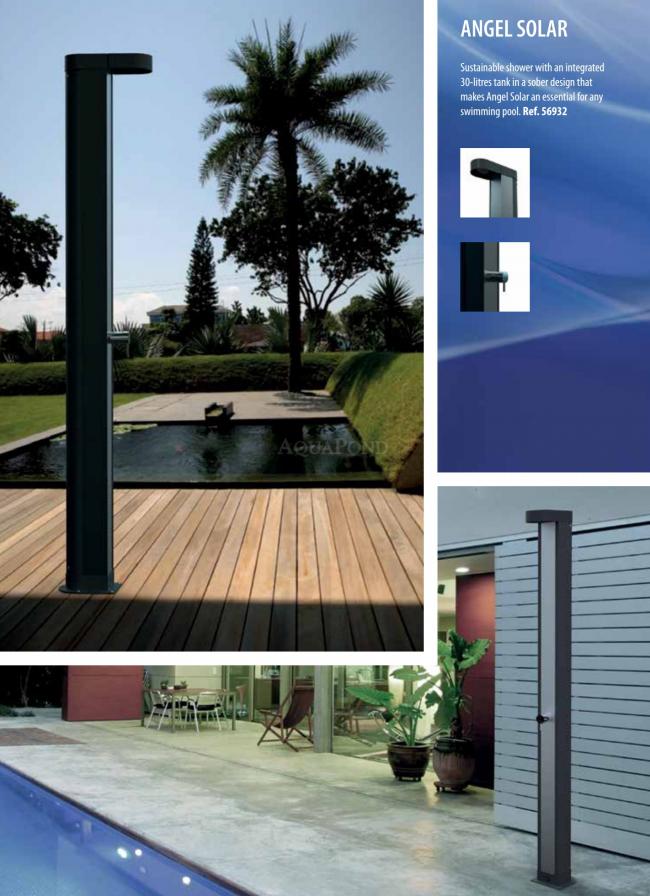 Zbog jednostavne i kvalitetne obrade solarni tuš ANGEL preporuča se kao dodatak svim vrstama bazena. Izrađena je od aluminija u sivoj površinskoj obradi (RAL7021) s dovodom vode u aluminijski spremnik zapremine 30 litara. U akumulaciji se voda zagrijava sunčevom energijom. Baterija poluge omogućuje podešavanje željene temperature.