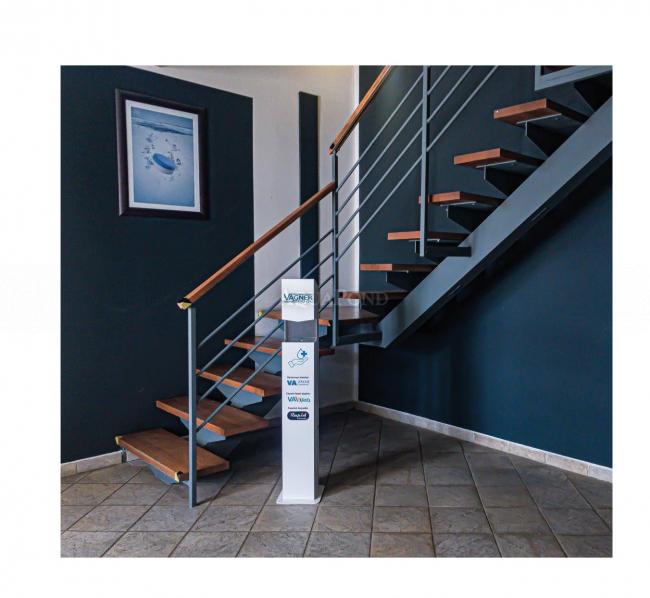 trgovačkim centrima, uredima, uredima, trgovinama, frizerskim salonima, kolodvorima, restoranima i bistroima, bolnicama, čekaonicama liječnika opće prakse, vrtićima, školama i svugdje gdje je potrebno tijekom pandemije ali i nakon nje pridržavati se strogih higijenskih uvjeta i dezinficirati ruke i čime se sprječava moguće širenje opasnih virusnih bolesti kao što je COVID19. S obzirom na situaciju, redovita dezinfekcija ruku bit će dio svakodnevice, i to ne samo sada, već će služiti kao dugoročna prevencija od ponovnog razlikovanja aktualnih i novih virusnih bolesti.